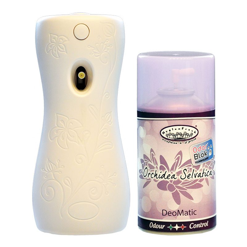 Luchtverfrissende spray met wilde orchideeën geur verrijkt met de innovatieve OdorBlok-technologie. Nare geurtjes worden niet verbloemd, maar geëlimineerd door deze technologie.
