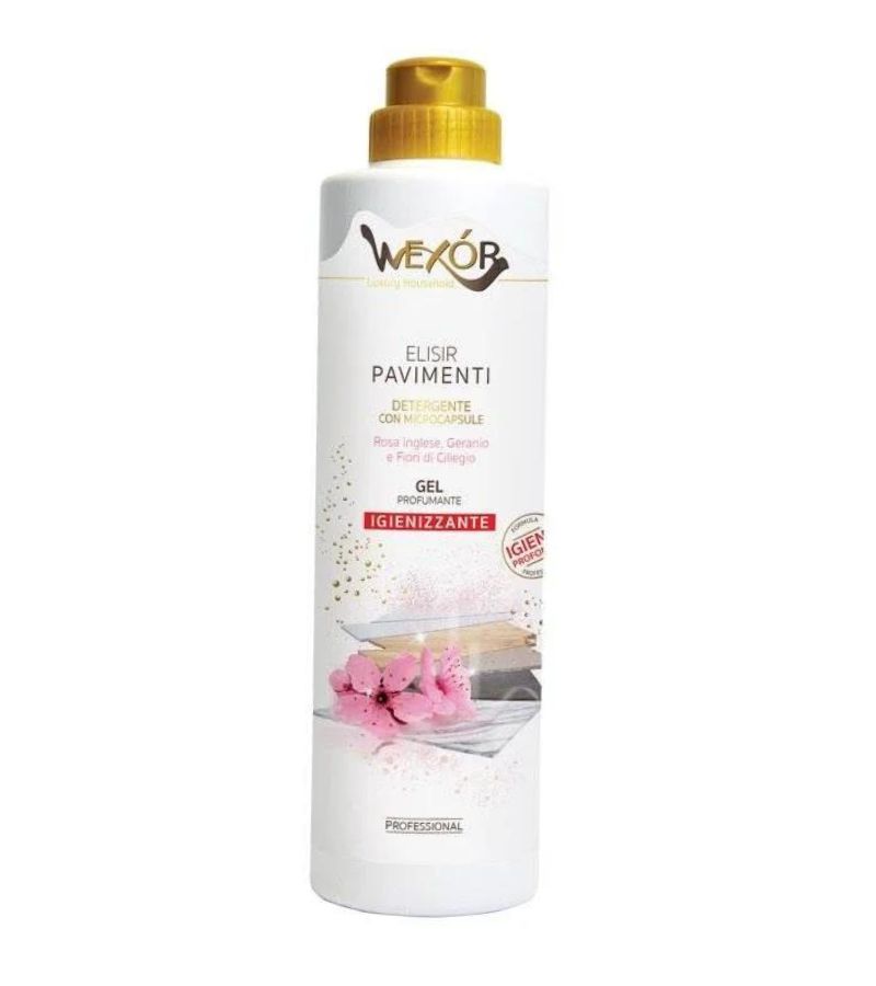 Elisir Pavimenti Armonia Rosa Wexór is een hygiënische vloer- en allesreiniger, een echte hygiënebehandeling voor álle soorten vloeren én afwasbare oppervlakken. De geconcentreerde GEL-formule garandeert een perfect resultaat vanaf het eerste gebruik. De microcapsules die het bevat bevorderen een “langzame afgifte” en zorgen ervoor dat de kostbare intense geur nog lang na het wassen aanwezig blijft. Vermindert de reinigingstijd en hoeft niet te worden afgespoeld.